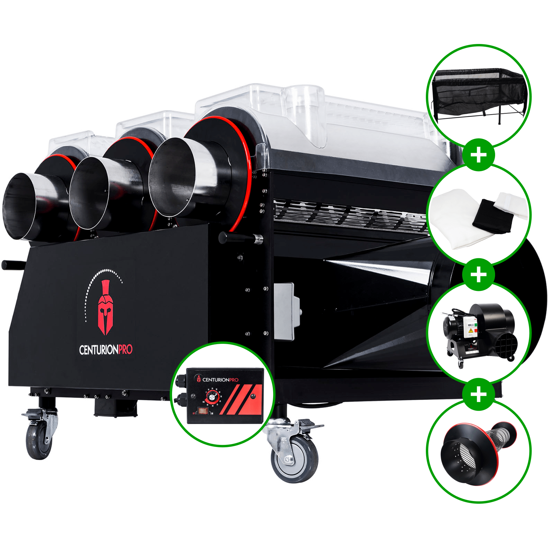 Équipé d'un système exclusif de filtration et de collecte du kief à triple sac, le CenturionPro 3.0+ permet de récupérer le précieux kief lors de la taille. Cette double fonctionnalité optimise l'efficacité et l'utilisation des ressources, garantissant ainsi qu'aucune partie de la récolte ne soit gaspillée.