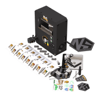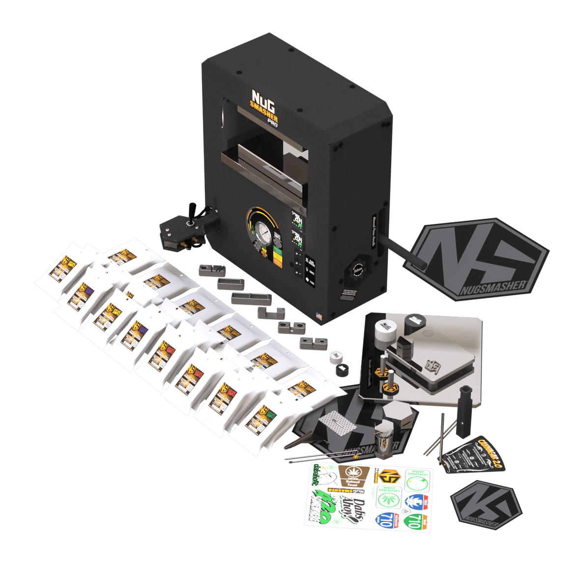 Conçu pour une utilisation industrielle, le NugSmasher Pro Master Bundle est l'ensemble le plus complet de NugSmasher comprenant deux presses, la Pro et la Mini. Comprend la gamme complète de sacs d'extraction, un ensemble complet de moules, plusieurs tapis et outils pour préparer votre équipe au pressage.