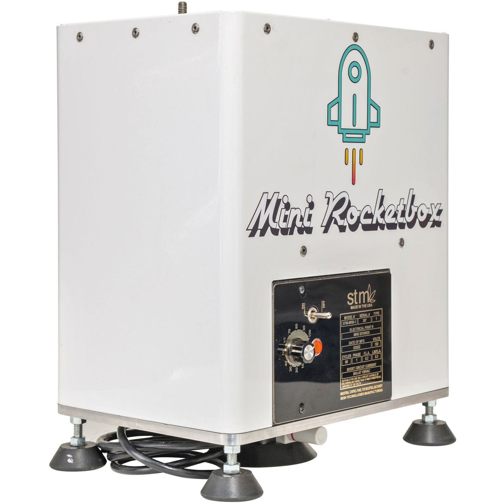 La Mini-Rocketbox+ est une machine d'emballage polyvalente. Elle permet d'emballer des articles de toutes tailles, de manière compacte ou non. Son variateur de vitesse optimise le flux d'air pendant l'emballage, améliorant ainsi la productivité et éliminant le gaspillage. Son plateau supérieur réglable évite le surremplissage des cornets.