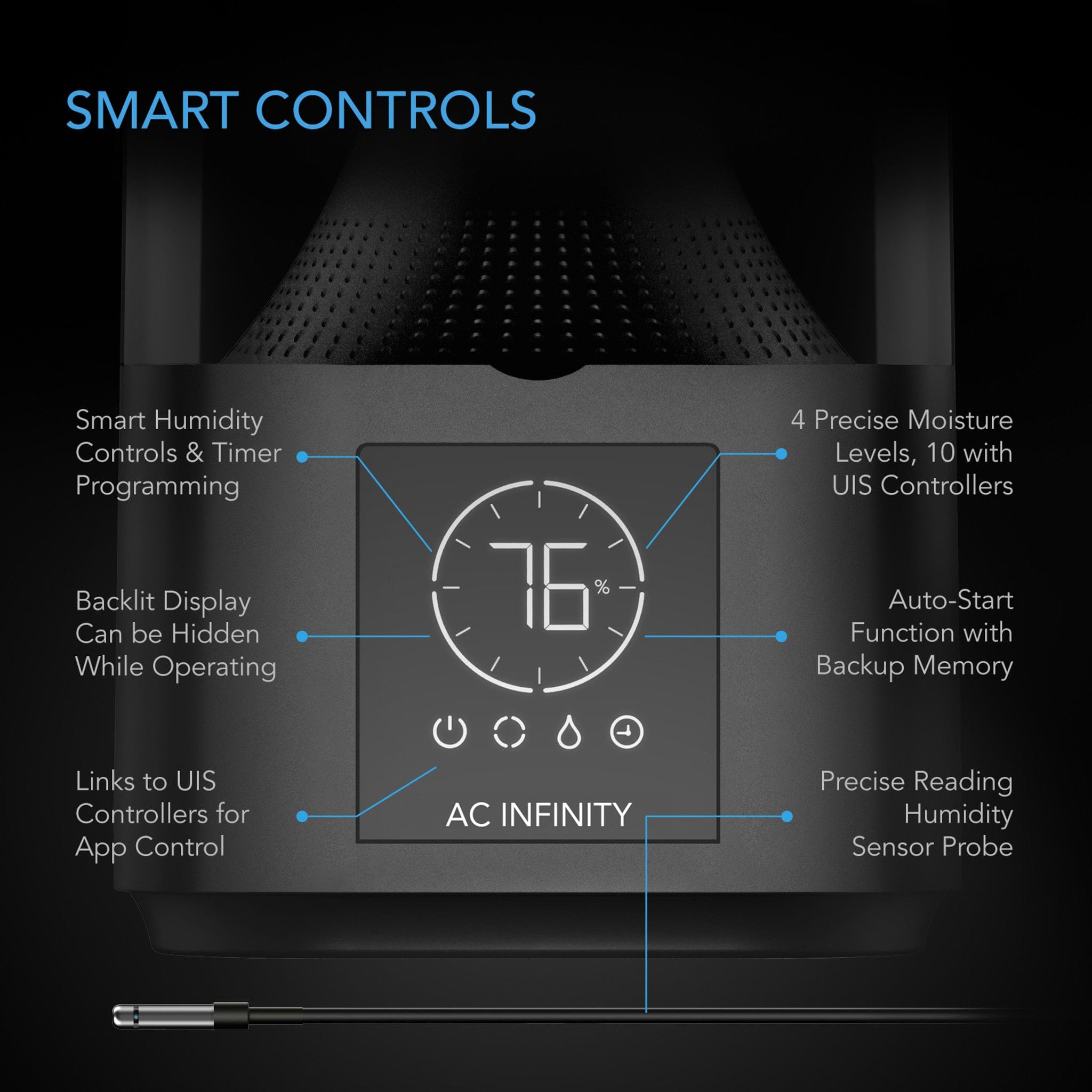 corded sensor probe and extendable tubing system, allowing you to position the unit outside your grow tent while accurately monitoring and controlling humidity inside. This innovative design maximizes your growing space while ensuring precise environmental control.