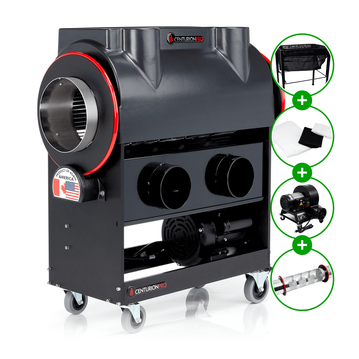 The Mini comes equipped with a robust 1.5 horsepower leaf collector and a triple-bag kief filtration and trim collection system. This well-designed segregation system ensures efficient separation of plant material, preserving the quality of both the trimmed buds and the valuable kief. For operations looking to further enhance their processing capabilities, the Mini offers several upgrade options, including the non-stick Quantanium Tumbler for improved trichome preservation and integration with CenturionPro buckers for a seamless bucking-to-trimming workflow.