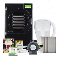 Harvest Right black medium pro freeze dryer with premier pump, Mylar kit, pump oil, trays, guide, and water filter.