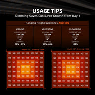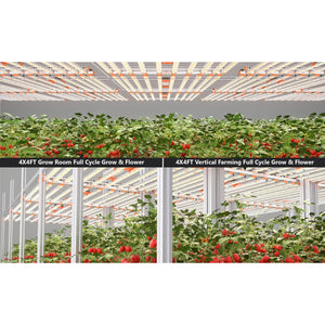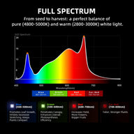 5'x5' maximum, this fixture delivers professional commercial high-yielding full-cycle growth performance. The advanced full spectrum lighting (650-665nm, 2800-3200K, 4800-5000K) is perfect for seed to harvest, adapting to each phase of the plant cycle with precise dimming control.