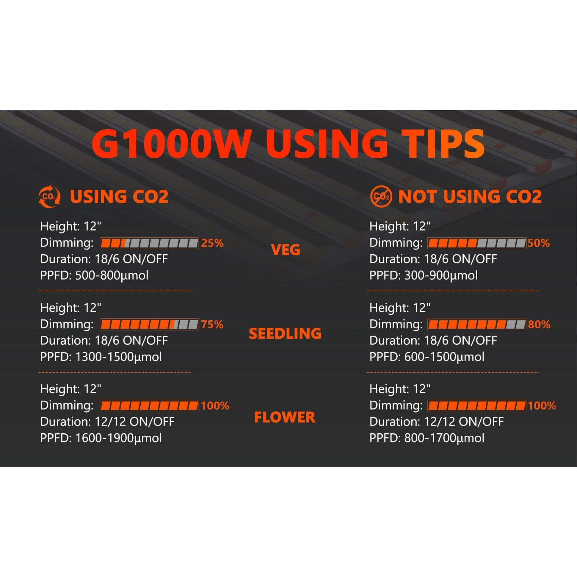 The bar grow light design with aluminum heat sink contributes to superior airflow and heat dissipation. The
