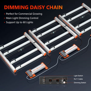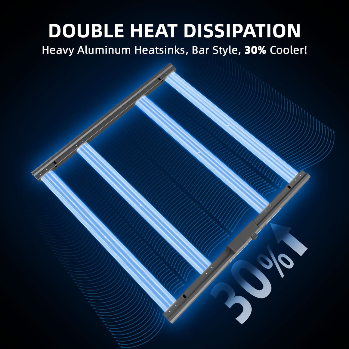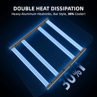 The strip grow light design with aluminum heat sink promotes superior air circulation and fast heat dissipation. The removable driver with 7.7-foot power cord extends fixture lifespan by reducing ambient heat in the grow space. Waterproof coating on LED diodes ensures safe operation in wet conditions.