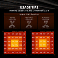 The Spider Farmer G3000 features advanced full spectrum with UV 405-415nm and IR 660-665nm, 730-740nm wavelengths. The UV light effectively promotes robust stem growth, while the IR light enhances flower and fruit production, providing complete spectrum coverage from seed to harvest.