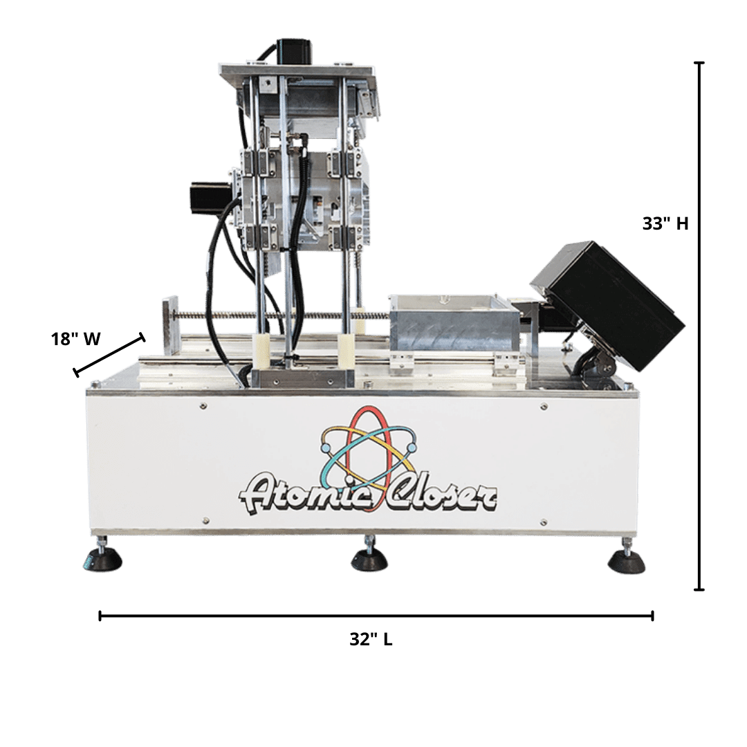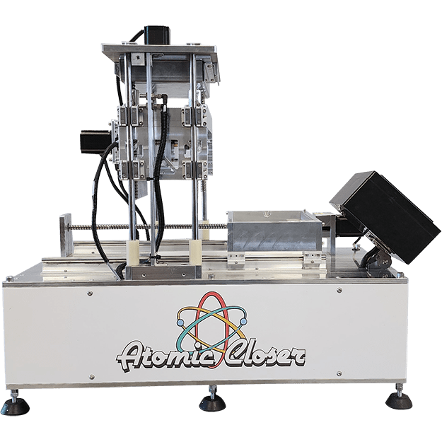 Atomic Closer machine offers a 1-year warranty. It is also a durable stainless steel and aluminum construction that is food grade, made in the U.S.A.